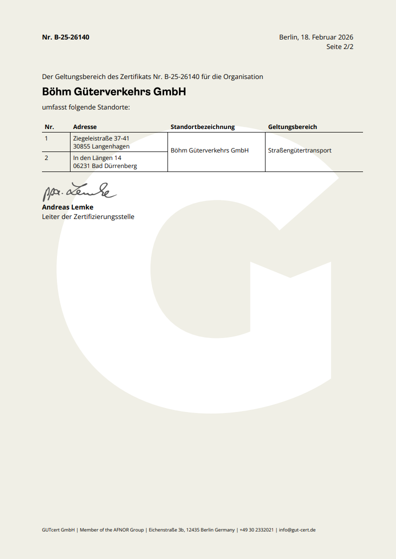 bei der Böhm Güterverkehrs GmbH